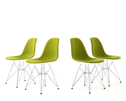 650,00 €Desenhada por Charles e Ray Eames em 1950, a Plastic Chair foi a primeira cadeira em plástico a ser produzida em massa. A sigla DAL é sinónimo de base em alumínio polido "La Fonda", desenhada igualmente pelo casal para o restaurante La Fonda del Sol, em Nova Iorque, a pedido de Alexander Girard. Este modelo produzido pela Vitra tem o seu casco em plástico branco estofado a tecido "Hopsak yellow/pastel green" ref.ª71 com remate a branco. Atenção: Valor unitário -