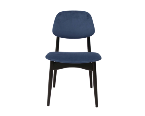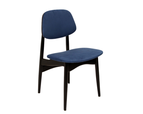 180,00 €Cadeira vintage desenvolvida na Itália nos anos 60 com estrutura de madeira com velatura preta, costas folheadas a madeira exótica. Assento e costas em veludo azul. Atenção: Valor unitário -