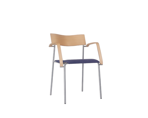 420,00 €Cadeira de visita com pés e braços em aço cromado. Assento e costas em tecido original sobre estrutura de laminado de madeira moldada folheada a nogueira envernizada. Pousa braços acolchoado no mesmo tecido. Atenção: Valor unitário -