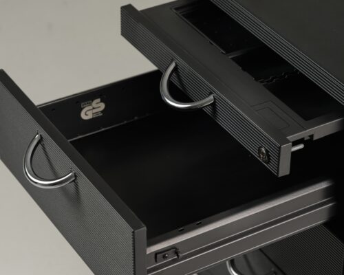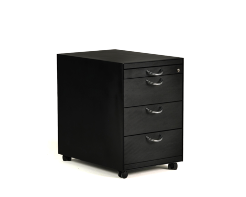 Bloco rodado de 4 gavetas com estrutura totalmente em chapa de aço com pintura epoxy preto 3005.Gaveta superior extraível para útensilios e 3 gavetas A4. Atenção: Valor unitário. Realizamos entregas a nível mundial. Para envios fora de Portugal e Espanha, por favor, entre em contacto connosco para receber um orçamento personalizado. Para mais informações sobre preços, consulte-nos através do email info@ikonisch.pt ou pelo telefone +351 913 068 270.