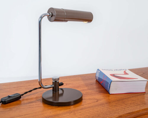 Candeeiro de mesa produzido pela Hillebrand em 1970s em cor preto com elementos cromados. Graças ao pescoço de ganso flexível, é possível uma iluminação ajustável. Assim, o candeeiro pode ser utilizado tanto para trabalhar como para ler. Por favor, note que a lâmpada não está incluída neste produto, permitindo-lhe personalizar a iluminação de acordo com suas preferências e necessidades específicas. Realizamos entregas a nível mundial. Para envios fora de Portugal e Espanha, por favor, entre em contacto connosco para receber um orçamento personalizado. Para mais informações sobre preços, consulte-nos através do email info@ikonisch.pt ou pelo telefone +351 913 068 270.