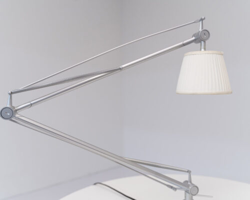 140,00 €Candeeiro contemporâneo de mesa desenhado por Philippe Starck em 2004. Os desenhos de Philippe Starck sempre procuram uma consciência política e cívica mais profunda. O seu trabalho é ao mesmo tempo prático e concebido tendo em vista a durabilidade. Peças como a Archimoon redefine o significado de "statement peace". O candeeiro possui um braço completamente flexível de alumínio prateado com molas que proporcionam um braço com movimento paralelo. O abajur do candeeiro, feito de tecido Plisse, movimenta-se horizontalmente à mesa e tem um difusor interno de vidro opala, proporcionando tanto iluminação directa como difusa. Casquilho G9 com interruptor na base. -