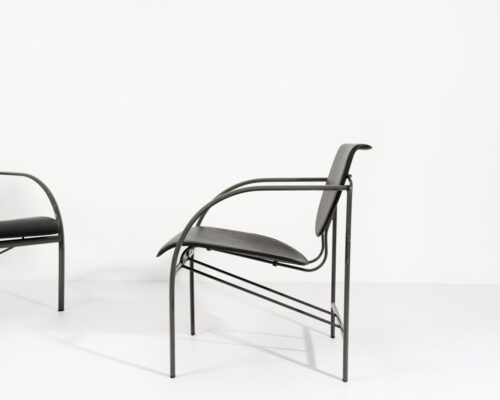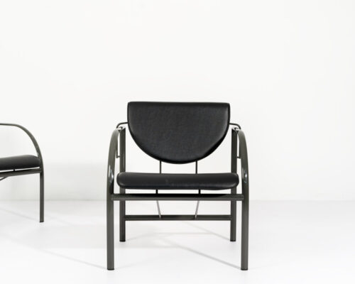 220,00 €Poltrona em estrutura de aço lacado a antracite. Assento e costas em pele natural preta. Mesa de apoio vendida em separado.