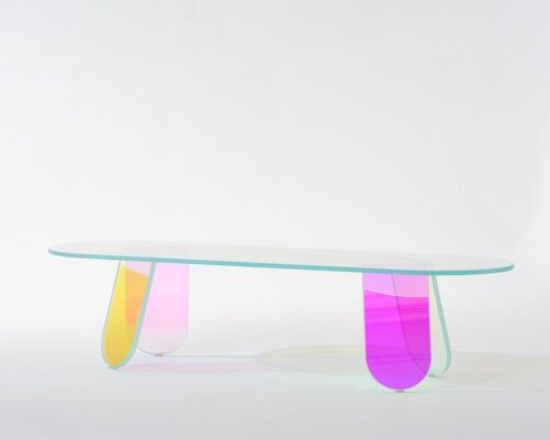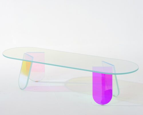 Out of stockShimmer Table is a glass table by Italian brand Glas Italia, made by internationally renowned furniture designer Patricia Urquiola. The table is made of transparent or opaque glass with an iridescent, frosted finish. The table top rests on four rounded legs that match the top. All the components are carefully glued together by hand by the brand's skilled craftsmen. The table is made of extra-light glass which has a unique polychromatic finish that allows each component of the table to reflect a subtle variation of colour across its surface. The highly iridescent effect, which constantly varies depending on where the viewer is in the room and how the light hits the table, has given the Shimmer series its name. It's important to note that the table manufacturing process generates a unique finish for each table, which means that variations in colour and texture between tables are a big part of each table's character. It should be noted that this table has a small break in one of the table's lower panes that is barely noticeable and only visible at certain angles, but which guarantees the table's full functionality as a support for decorative objects. Attention: Unit price. We deliver worldwide. For shipments outside of Portugal and Spain, please contact us for a personalized quote. For more information on prices, please contact us by email at info@ikonisch.pt or by telephone on +351 913 068 270.