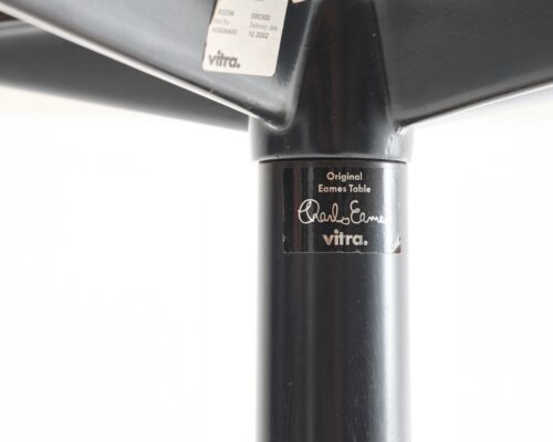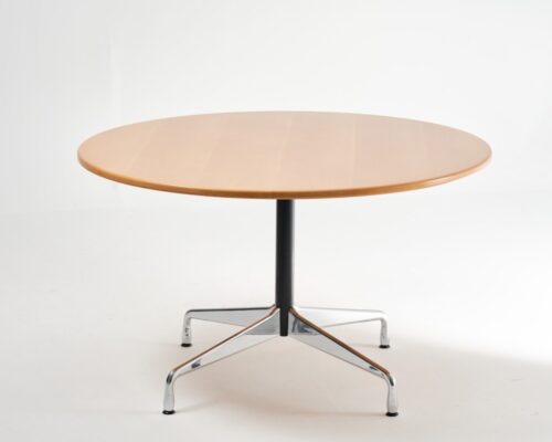 800,00 €Designed by Charles and Ray Eames in 1964 and manufactured by Vitra, this Segmented model has a four-spoke structure and four aluminium supports, with a black column (RAL 9004) and a round oak top. Year of manufacture 2002. Base size: 70x70cm / Top size: Ø150cm Top thickness: 3cm Attention: Unit price. We deliver worldwide. For shipments outside of Portugal and Spain, please contact us for a personalized quote. For more information on prices, please contact us by email at info@ikonisch.pt or by telephone on +351 913 068 270. -