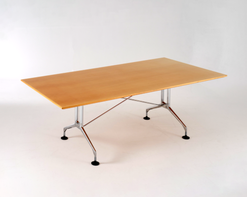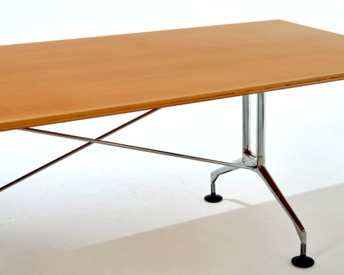 Out of stockRectangular meeting table 2100 x 1000 by Antonio Citterio model Spatio, for the office or living room table with a full oak wood top and chrome aluminium frame produced by Vitra in the 90s. Attention: Unit price. We deliver worldwide. For shipments outside of Portugal and Spain, please contact us for a personalized quote. For more information on prices, please contact us by email at info@ikonisch.pt or by telephone on +351 913 068 270.