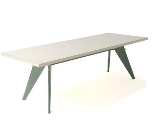 Out of stockDesigned in 1950 by Jean Prouvé for the prefabricated housing project La Maison Tropicale, the EM Table (Entretoise Métallique) stands out for its functional and aesthetic structural construction. The powder coated steel structure, with diagonal legs, follows principles of engineering and architecture, giving stability and character. The rectangular top adds a natural and sophisticated touch to the set. Timeless and versatile, the EM Table easily adapts to dining or office environments. We deliver worldwide. For shipments outside of Portugal and Spain, please contact us for a personalized quote. For more information on prices, please contact us by email at info@ikonisch.pt or by telephone on +351 913 068 270.