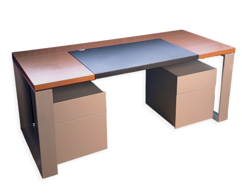 Out of stockSecretária executiva 1800x800 com tampo em madeira e base apoio central amovível com 2 blocos rodados de 2 gavetas(A4 + A3).O nosso ambiente influencia como pensamos e agimos.Os recursos cativantes da SONO são a qualidade arquitetônica e a funcionalidade inteligente. A modularidade é o princípio básico do projeto, e o sistema multifacetado do local de trabalho realiza-o à perfeição. Os blocos rodados são agrupados conforme desejado, formando práticos acessos para armazenamento e integrando perfeitamente o que há de mais moderno em tecnologia. Quadros de alumínio impressionantes suportam um tampo folheado de madeira natural envernizada. Medidas gerais: Secretária: Largura: 180cm / Profundidade: 80cm / Altura: 74,5cm / espessura do tampo: 4cm; Blocos de gaveta: Largura: 44,5cm / Profundidade: 60cm / Altura: 54,5cm Atenção: Valor do conjunto.