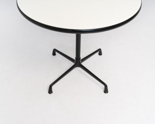 400,00 €Desenhada por Charles e Ray Eames e fabricada pela Vitra, este modelo Contract conta com uma estrutura de quatro raios em alumínio com pintura eletrostática preta. Suporta um tampo original em HPL na cor branca com borda boleada em borracha preta. -