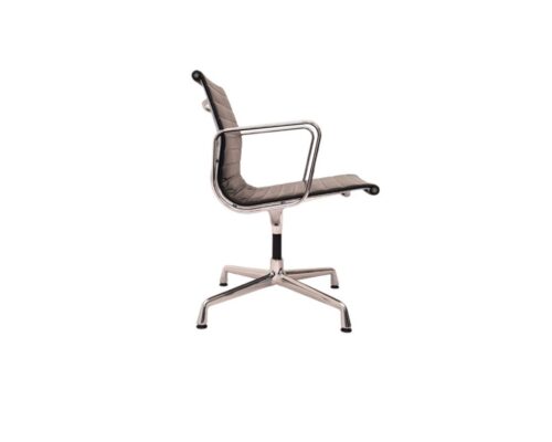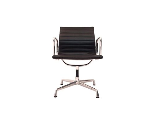 670,00 €A cadeira de trabalho EA 108, do Aluminium Group by Charles e Ray Eames para Vitra, acrescenta uma presença icônica e de pretigio a todos escritórios, sendo uma cadeira adaptável ao corpo do usuário e extraordinariamente confortável. Cadeira de trabalho giratória, de costa média, com perfis laterais, travessas, braços e base de cinco raios de alumínio fundido cromado. Assento e encosto em couro natural preto. -