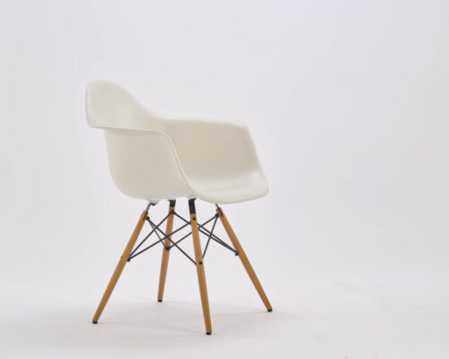 542,00 €Cadeira modelo DAW (Dining Height Armchair Wood Base) desenhada por Charles e Ray Eames em 1950, nova, sem uso. A DAW combina a base de madeira com uma concha feita de plástico reciclado, criando um rico contraste de materiais e com com muitos argumentos de beleza e volumetria. Altura do assento: 43cm. Ano de fabrico: 2015. Realizamos entregas a nível mundial. Para envios fora de Portugal e Espanha, por favor, entre em contacto connosco para receber um orçamento personalizado. Para mais informações sobre preços, consulte-nos através do email info@ikonisch.pt ou pelo telefone +351 913 068 270. -