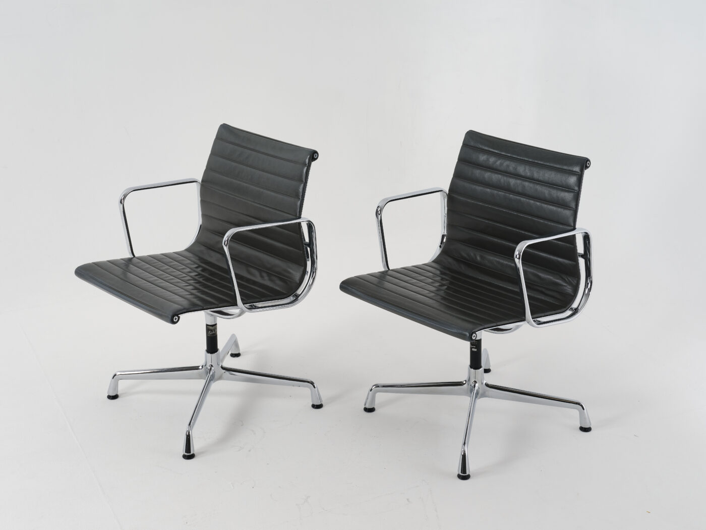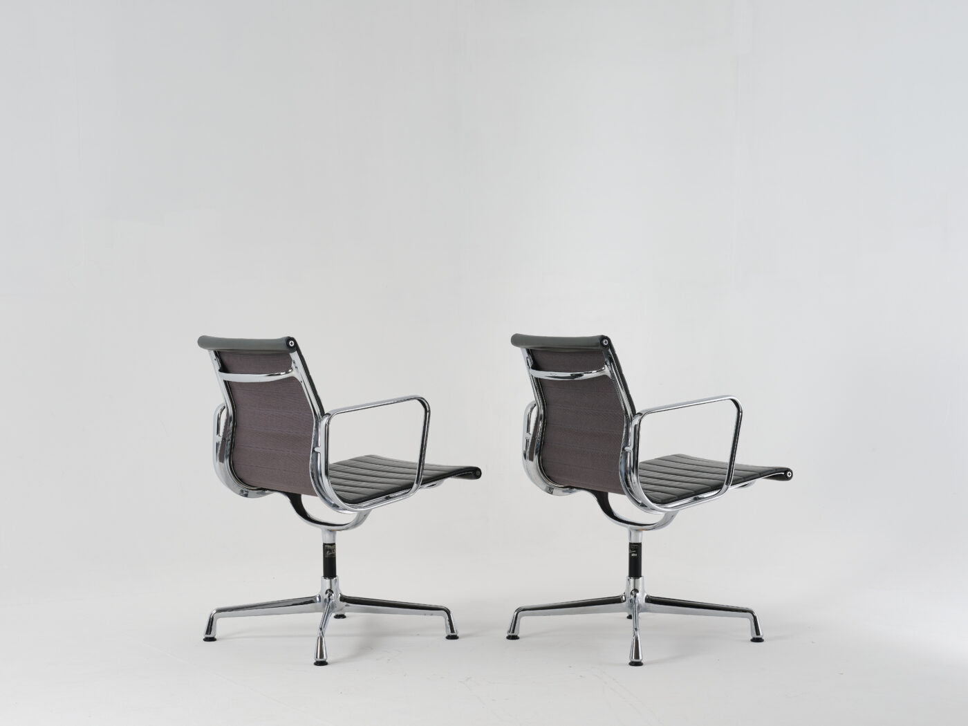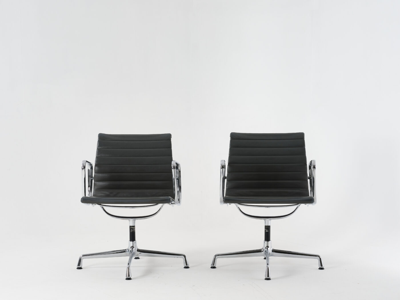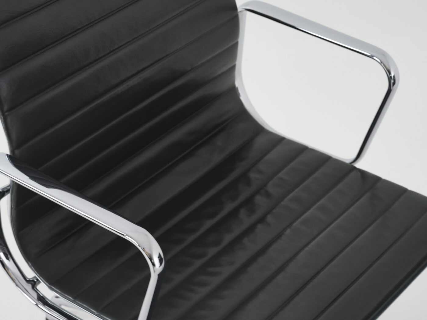 A cadeira de visita EA 108, do Aluminium Group by Charles e Ray Eames para Vitra, acrescenta uma presença icônica e de pretigio a todos escritórios, sendo uma cadeira adaptável ao corpo do usuário e extraordinariamente confortável.